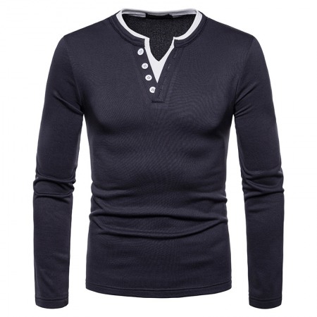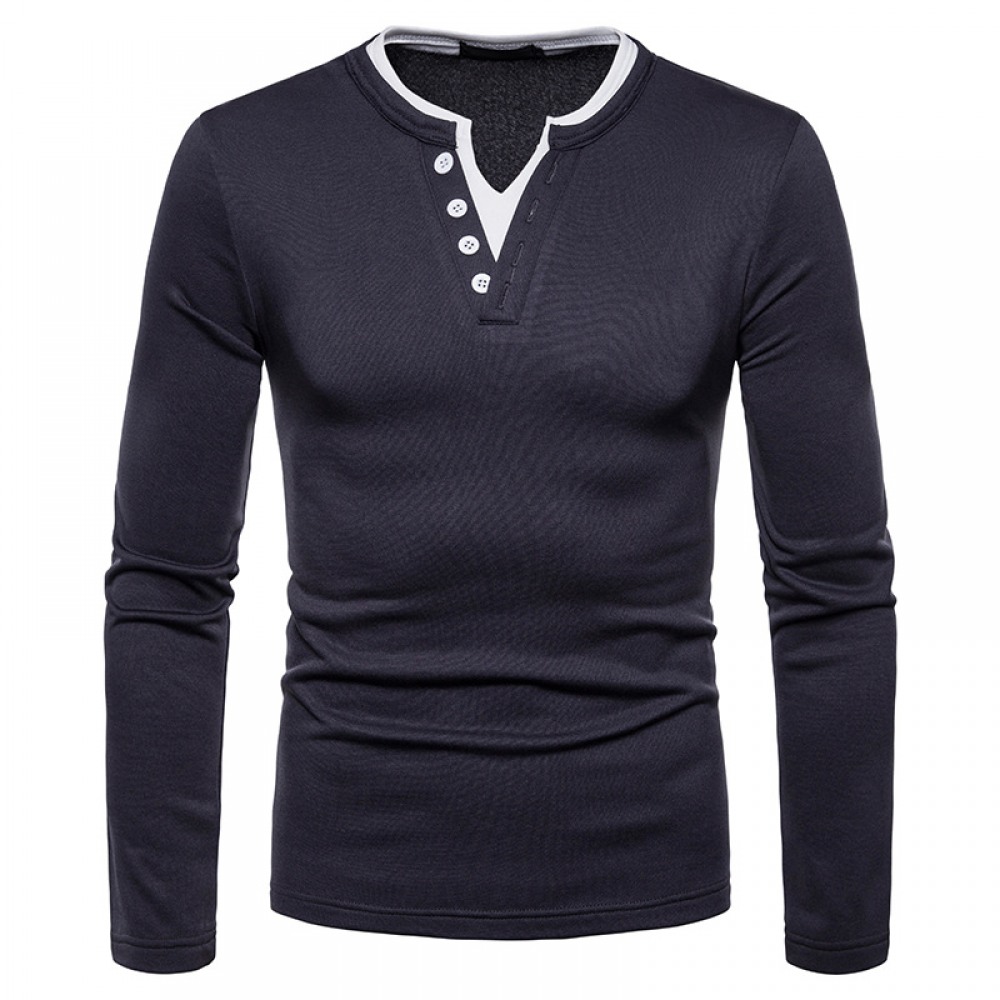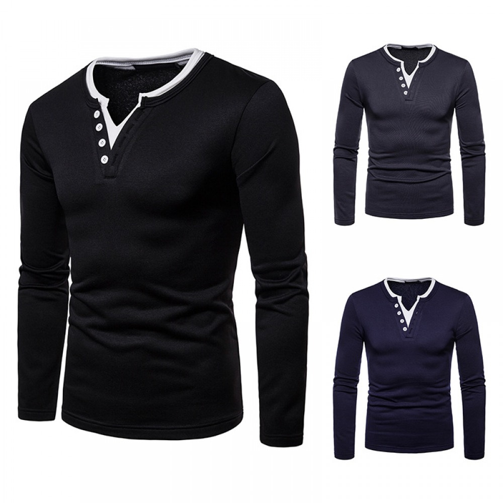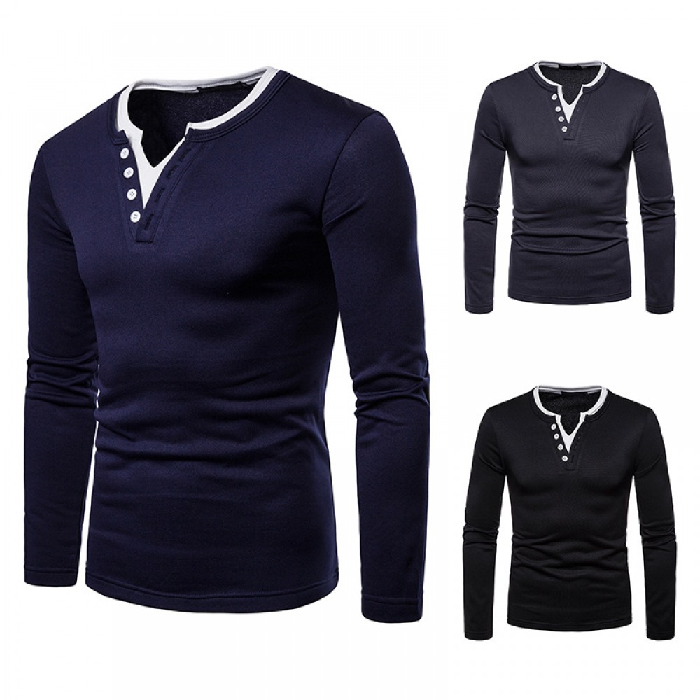 Men's Plus Size Plus Velvet Warm Henley Collar Long-Sleeved T-Shirt Bottoming Shirt