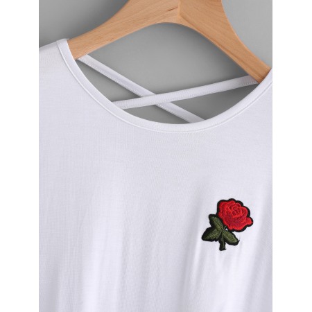 New Style Rose Embroidery Solid Color Sexy Lady T-Shirt