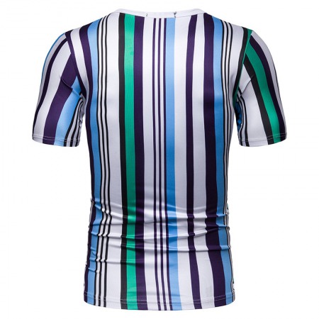 New Summer Men's Short-Sleeved T-Shirt Mens Contrast Striped Slim Casual T-Shirts